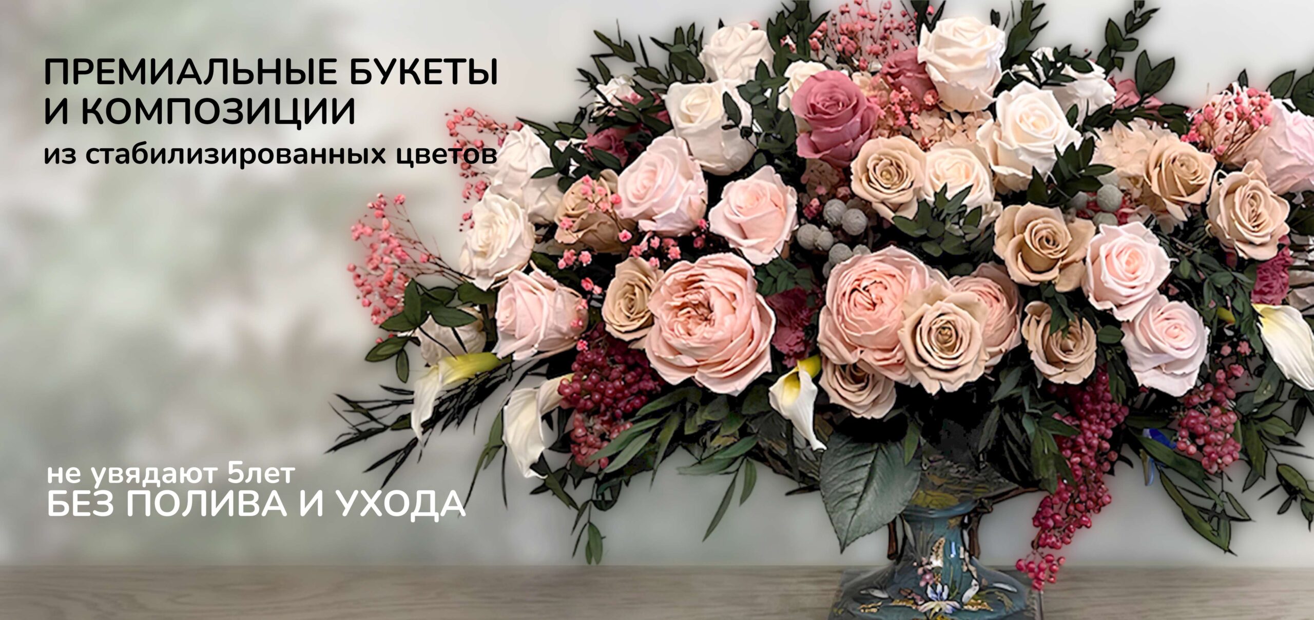 Букеты и композиции класса люкс из живых стабилизированных цветов подчеркнут роскошь вашего интерьера и воплотят мечты в реальность.