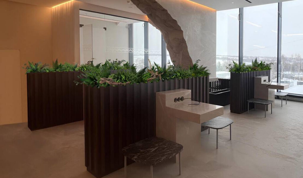 Результатом стали просторные ниши, наполненные ощущением живой природы, комфортные для путешественников и полностью удовлетворяющие запросы технического персонала аэропорта. Этот проект стал ярким доказательством эффективности подхода с применением стабилизированных растений в местах общественного пользования.