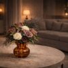 Композиция из стабилизированных цветов в доме создаёт ощущение уюта, но делает это очень деликатно. Она не требует ухода, не теряет форму, не осыпается — просто стоит и украшает собой пространство, словно часть праздничной атмосферы, которая появилась сама собой.