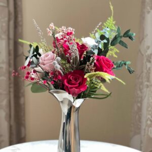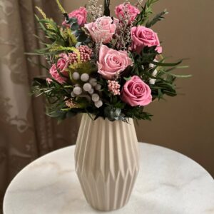 TLK-385 Подарочный букетик из стабилизированных роз в светло-серой вазе