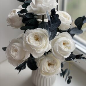 Стабилизированные цветы не завянут и останутся свежими в течение нескольких лет. Особого ухода такие растения не требуют.