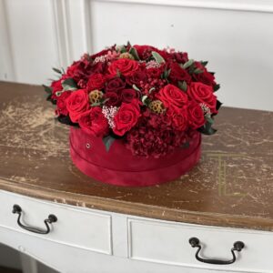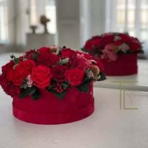 Теги: букет в коробке, красные цветы, розы, стабилизированные цветы