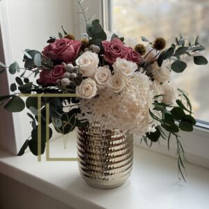 TLK-172 Композиция из стабилизированных цветов в золотой вазе