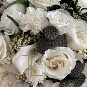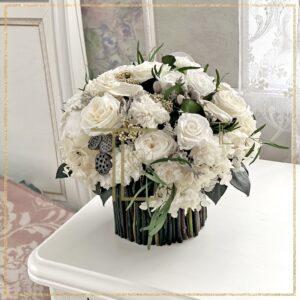 Воздушный стабилизированный букет на стеблях. Украшение для свадебного стола или гостиничного номера. Каллы, розы, гортензии… объединены в единый образ. Мощное основание из стеблей, на котором стоит букет, дополняет композицию.