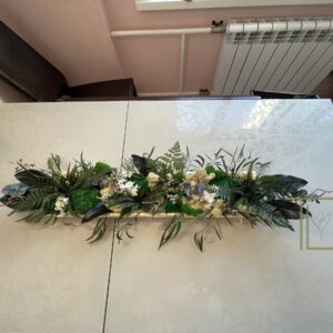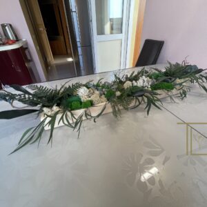 TLK-204 Зеленая растительная композиция в длинном деревянном ящике