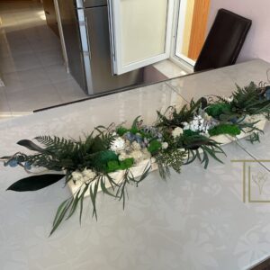 Натуральная удлиненная композиция с мхом, ивовыми веточками, папоротником и гортензией. Придает помещению естественную природную свежесть и натуральность.