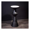 Однако подлинная ценность этого столика — в его столешнице из благородного черного камня. Поверхность гладкая, бархатная на ощупь, глубоко-матовая, приятно контрастирующая с металлом. Черный оттенок камня способен освежить интерьер, уравновесить яркие акценты или же наоборот, выступить выразительным фоном для прочих декоративных элементов.