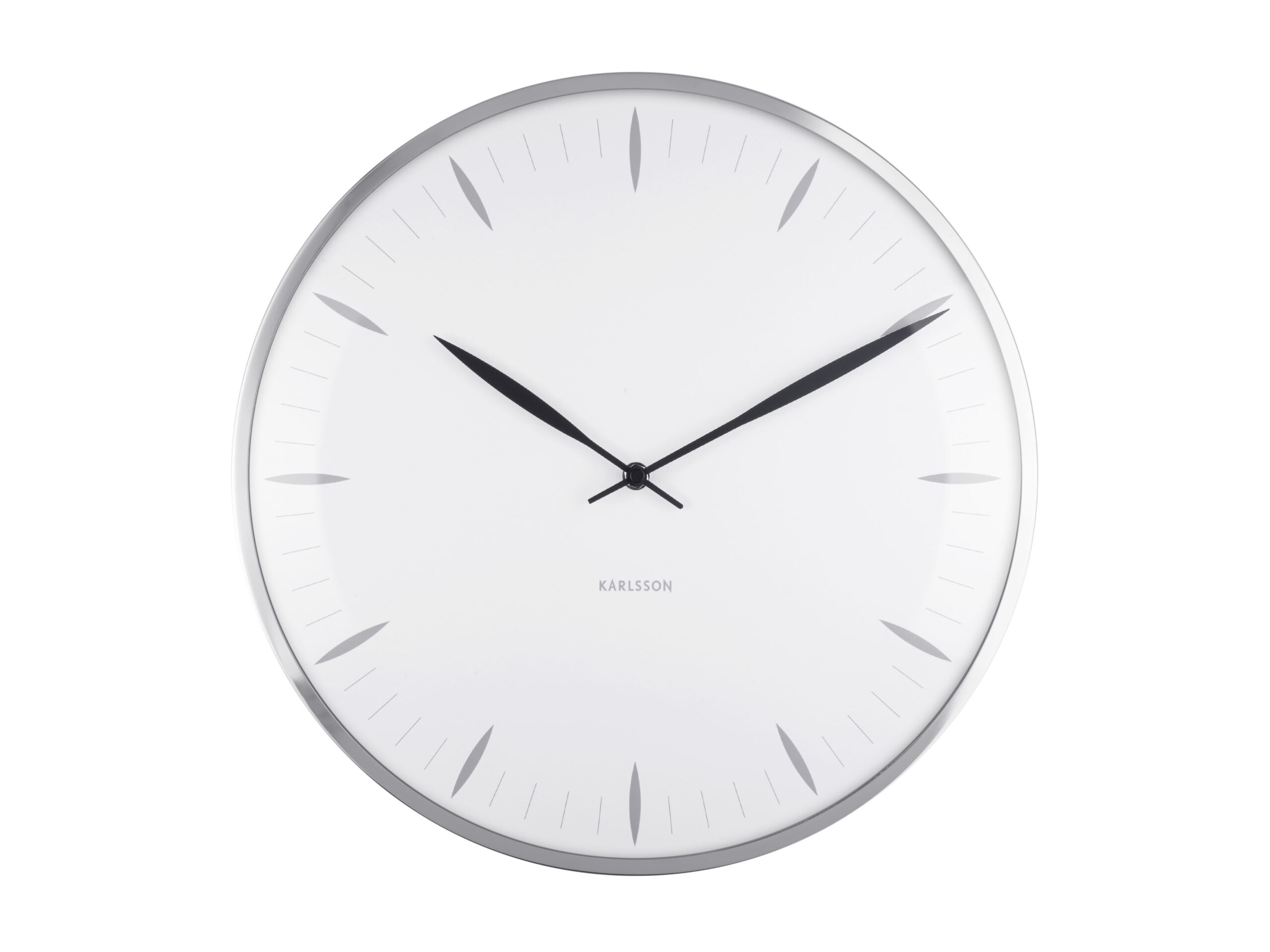 Белоснежный фон элегантно оттеняет серебристые стрелки, формируя чистый и свежий образ. Часы работают совершенно беззвучно, оставаясь невидимыми спутниками времени, подчёркивая утончённое чувство стиля хозяев.