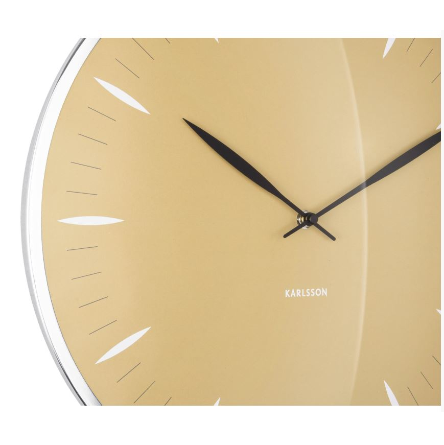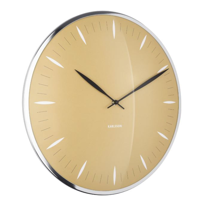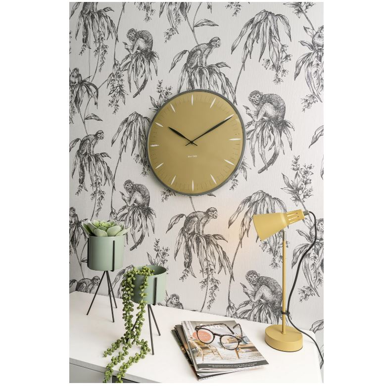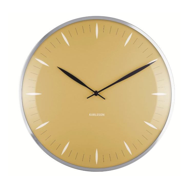 Круглая форма диаметром 40 см сделана из устойчивого стекла и стальной оправы, дарящих ощущение прочности и уверенности. Стрелки часов расположены предельно просто и удобно читаемы, а жёлтая гамма делает их центральной точкой на любой стене.