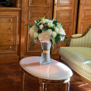 TLK-11 Премиум композиция из кремовых и кофейных стабилизированных роз в хрустальной вазе