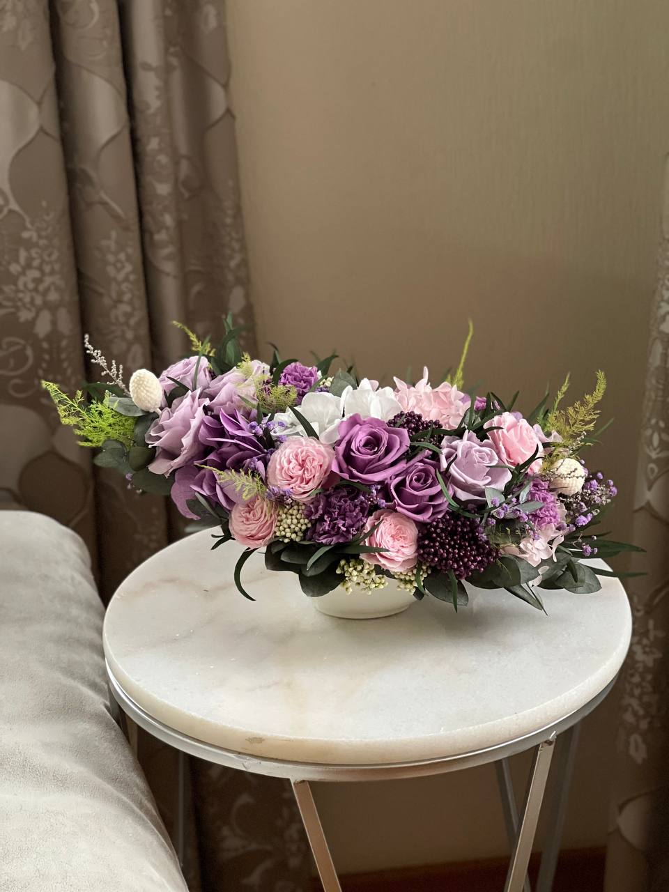 TLK-111 Интерьерная композиция из стабилизированных цветов пурпурная