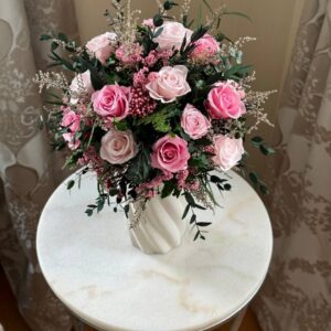Состав: стабилизированные пионовидных розы- 21 шт., ваза, зелень стабилизированная микс.