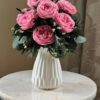 Этот букет из стабилизированных роз с зеленью и рисовым цветком станет прекрасным акцентом в вашем интерьере или идеальным подарком для особого случая. Он будет радовать глаз и создавать уютную атмосферу без необходимости ухода или замены свежих цветов.