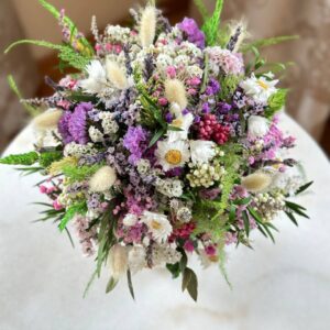 Букет из стабилизированных цветов – это прекрасное решение для тех, кто хочет наслаждаться красотой цветов без необходимости их поддерживать. Букет включает в себя микс разных цветов, включая полевые, и оформлен в стильной белой вазе из керамики.