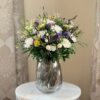 Букет создает настроение свежести утреннего луга. Только что собранные в охапку полевые цветы поставлены в великолепную голубую вазу, которая сама по себе уже является произведением искусства. Разнотравье, разноцветие — все это в одном букете. Такая композиция украсит прикроватную тумбу или кухонный стол за городом, в деревне.