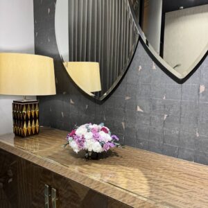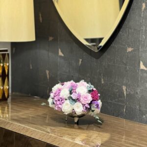 Стабилизированные цветы — это отличный способ добавить живописные акценты в интерьер вашего дома. Они не только красивы, но и долговечны, что делает их идеальным выбором для создания уникальных композиций. Сиренева композиция в серебристой вазе на ножках от компании Tamara Leman — идеальное решение для тех, кто ценит красоту природы, но не хочет тратить время на ежедневный уход за живыми цветами.