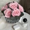 Каждая роза в этой композиции представляет собой чудесное произведение природы, с её утонченными лепестками и изысканным ароматом. Букет станет прекрасным украшением интерьера в частном доме или гостинице. Стабилизированные растения не требуют полива, освещения и специальных условий для сохранения своего внешнего вида. Они сохраняют свежесть и привлекательность на долгие годы, что делает их идеальным выбором для занятых людей.