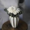 Стабилизированные цветы и зелень обладают долгим сроком службы, не требуют особого ухода и сохраняют свою свежесть и красоту на протяжении длительного времени. Это позволяет наслаждаться этой роскошной композицией долгие месяцы, не беспокоясь о замене свежих цветов. Позвольте этой композиции стать великолепным украшением вашего интерьера, добавляя ноту роскоши и изысканности в любую обстановку.