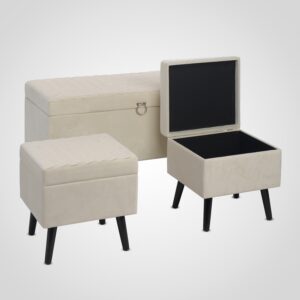 TLK-530 Кремовый Бархатный Набор из Банкетки и Двух Мягких Пуфов-Сундуков
