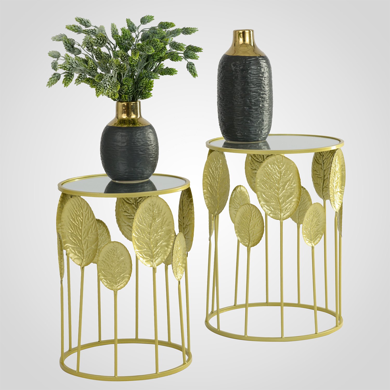 Набор из 2-х золотистых круглых подставок «Лист», изготовленные из прочного металла и стекла (зеркала), станут идеальным дополнением для вашего интерьера. Их золотистый цвет придает им роскошный и изысканный вид, который будет гармонично сочетаться с другими элементами вашего декора.