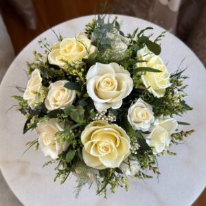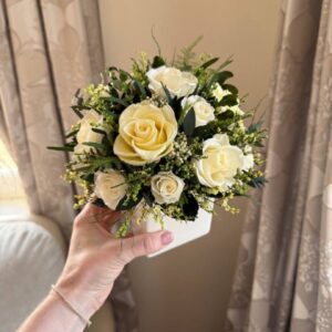 Состав букета: стабилизированные розы, микс зелени, ваза керамика.