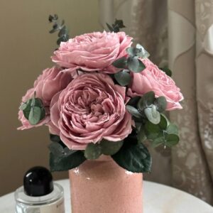 Окунитесь в атмосферу нежности и романтики с мини-букетиком из крупных стабилизированных пионовидных роз. Изящно оформленные в нюдовой керамической вазе, розы и зелень создадут неповторимую атмосферу свежести и уюта.