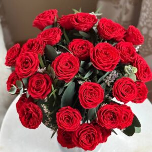 TLK-582 Букет из кустовых алых роз с эвкалиптом