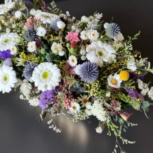 Теги: букет в ладье, букет из полевых цветов, полевые цветы, стабилизированная зелень, стабилизированные цветы