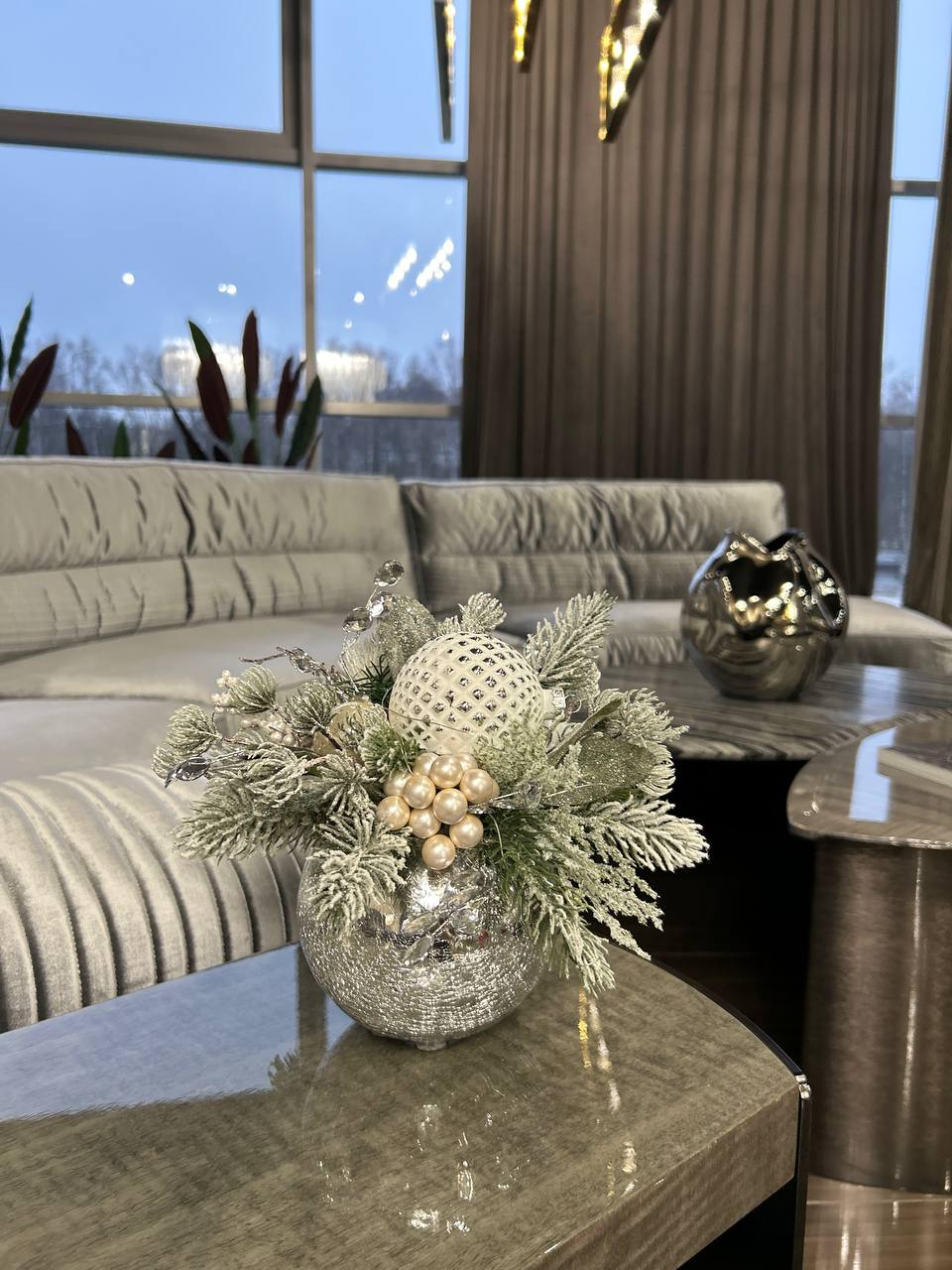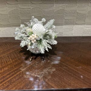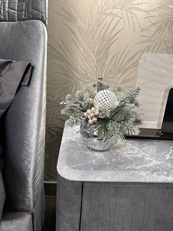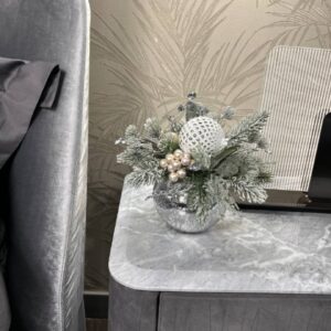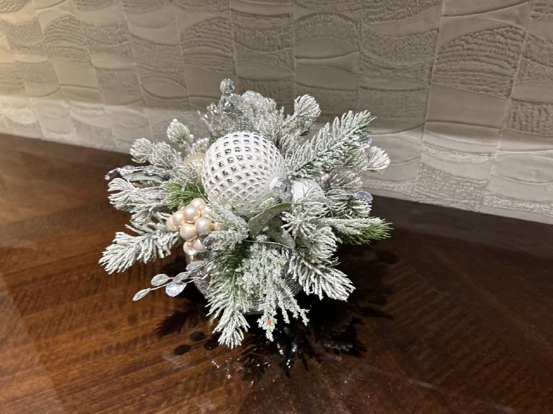 • Элегантность: Серебристые и белые элементы придают композиции изысканный вид.