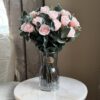 Теги: букет в вазе, персиковые розы, прозрачная ваза, стабилизированные цветы