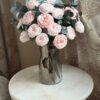 Полупрозрачная ваза из стекла с металлизированным покрытием даёт лёгкий зеркальный блеск и превращает букет из стабилизированных цветов в стильный арт-объект. Это настоящие стабилизированные цветы: они не вянут, не требуют воды и ухода, годами оставаясь безупречными вечными цветами. Такой декор из стабилизированных цветов идеально подойдёт для гостиной, кабинета или зоны приёма гостей, добавляя пространству свет, воздух и ощущение спокойной роскоши.