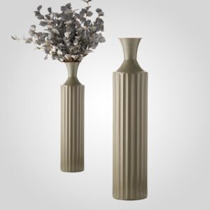 Доступна в двух привлекательных цветовых решениях: зеленом и сером. Зеленый цвет вазы придает ощущение свежести и живости, создавая гармоничное сочетание с природными элементами в интерьере. Серый цвет добавляет нотку сдержанности и элегантности, отлично сочетаясь с разными стилями декора.