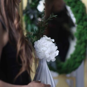 TLK-16 Мини композиция из стабилизированных роз с гарденией и ветками цинерария