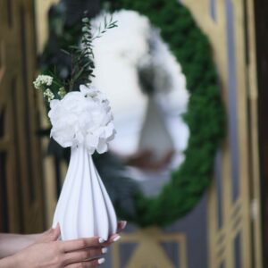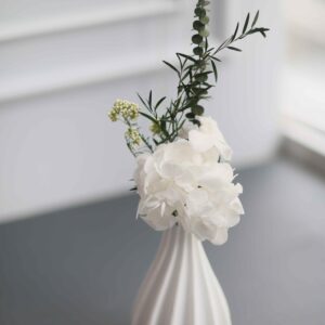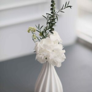 Композиция из стабилизированных гортензий в элегантной белой керамической вазе с рельефом в виде волнистых ребер с узким горлышком — это истинное произведение искусства, способное преобразить любое пространство. Уникальная текстура вазы придает композиции дополнительный объем и интерес, создавая эффект глубокого восприятия. Стабилизированные гортензии, обладающие яркими и насыщенными цветами, наполняют атмосферу нежностью и утонченностью, а их долговечность позволяет наслаждаться красотой букета долгое время без необходимости ухода.