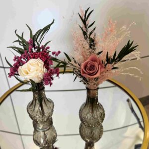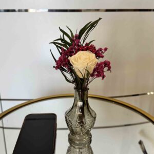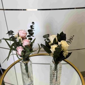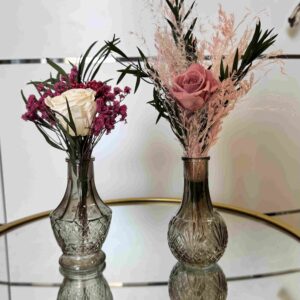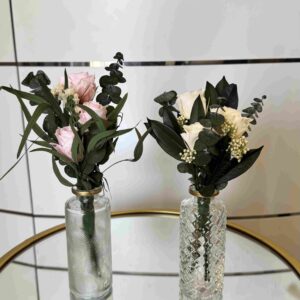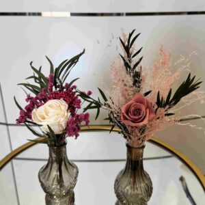 Мини букеты из стабилизированных роз в небольших стеклянных прозрачных вазочках. Это истинное произведение искусства, способное преобразить любое пространство. Яркие акценты в интерьере. Стеклянные вазы придают композиции дополнительную элегантность и интерес, создавая эффект воздушности и невесомости. Стабилизированные розы, обладающие яркими и насыщенными цветами, наполняют атмосферу нежностью и утонченностью, а их долговечность позволяет наслаждаться красотой букета долгое время без необходимости ухода.