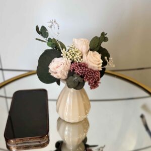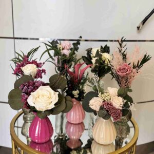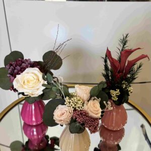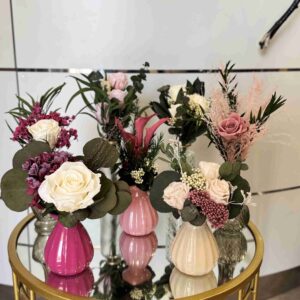 Мини букеты из стабилизированных роз, калл в фарфоровых вазочках приятных оттенков. Это истинное произведение искусства, способное преобразить любое пространство. Яркие акценты в интерьере. Вазы придают композиции дополнительную элегантность и интерес. Стабилизированные цветы, обладающие яркими и насыщенными цветами, наполняют атмосферу нежностью и утонченностью, а их долговечность позволяет наслаждаться красотой букета долгое время без необходимости ухода.