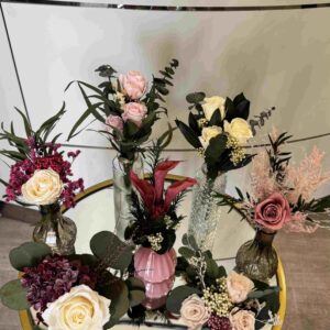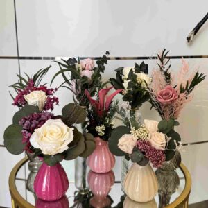 Эти роскошные мини-композиции идеально впишутся в любой интерьер — будь то стильный номер гостиницы, современная гостиная или уютная кухня. Они станут не только изысканным акцентом, но и символом вашего вкуса и стиля. Такой букеты — это также прекрасный способ добавить яркие нотки в ваше окружение, сделать его более теплым и уютным. Дарите себе и своим близким радость от общения с природой, создавая атмосферу комфорта и уюта в вашем доме или офисе с этой стильной композицией!