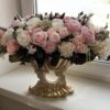 TLM-14 3 белых розы в золотой вазе
