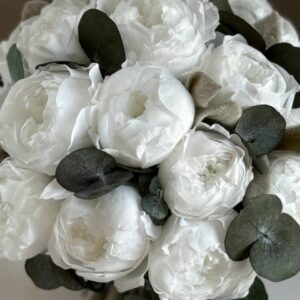 Волшебный свадебный букет из белых пионовидных стабилизированных роз — это симфония из изящества и элегантности. Каждый лепесток этих роз кажется созданным мастером-художником, сохраняя свою нежность и красоту навсегда.