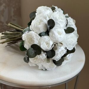 Теги: белые розы, букет, пионовидные розы, свадебный букет, стабилизированные, стабилизированные цветы, эвкалипт
