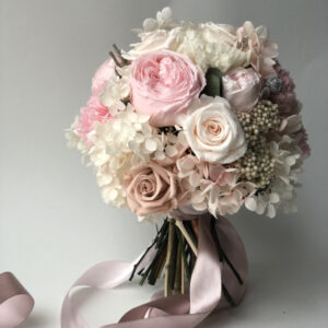 TLM-48 Нежно-розовый свадебный букет из стабилизированных цветов