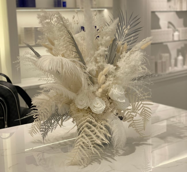Цветы Tamara Leman в интерьере салона красоты и spa добавят уникальный шик и элегантность вашему пространству. Эти прекрасные цветы остаются свежими и красивыми на протяжении долгого времени, не требуя ухода и поддержания.